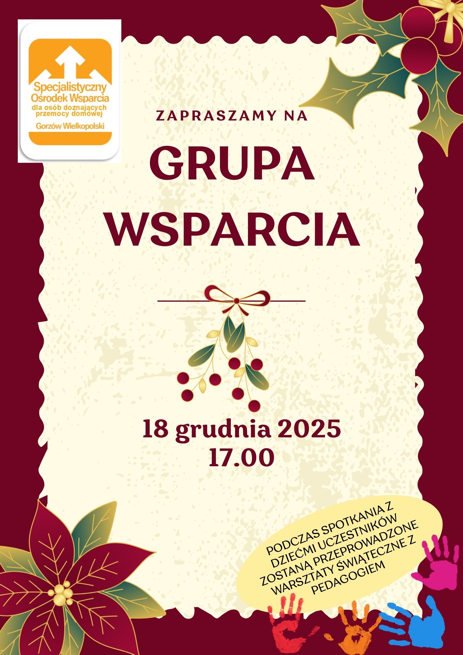 Zapraszamy na spotkanie Grupy Wsparcia, które odbędzie się 18 grudnia 2025r. o godz. 17.00